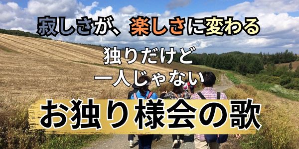- 「独り」になった理由は、みな様々ですが、別にその事で自分を責めたり縮こまって生きている必要はないんだ、と思えるようになりました。気さくな「メシ友」もできましたし、この会には感謝しております。入会をためらっている方がおりましたら是非、一歩前に踏み出してほしいと思います。