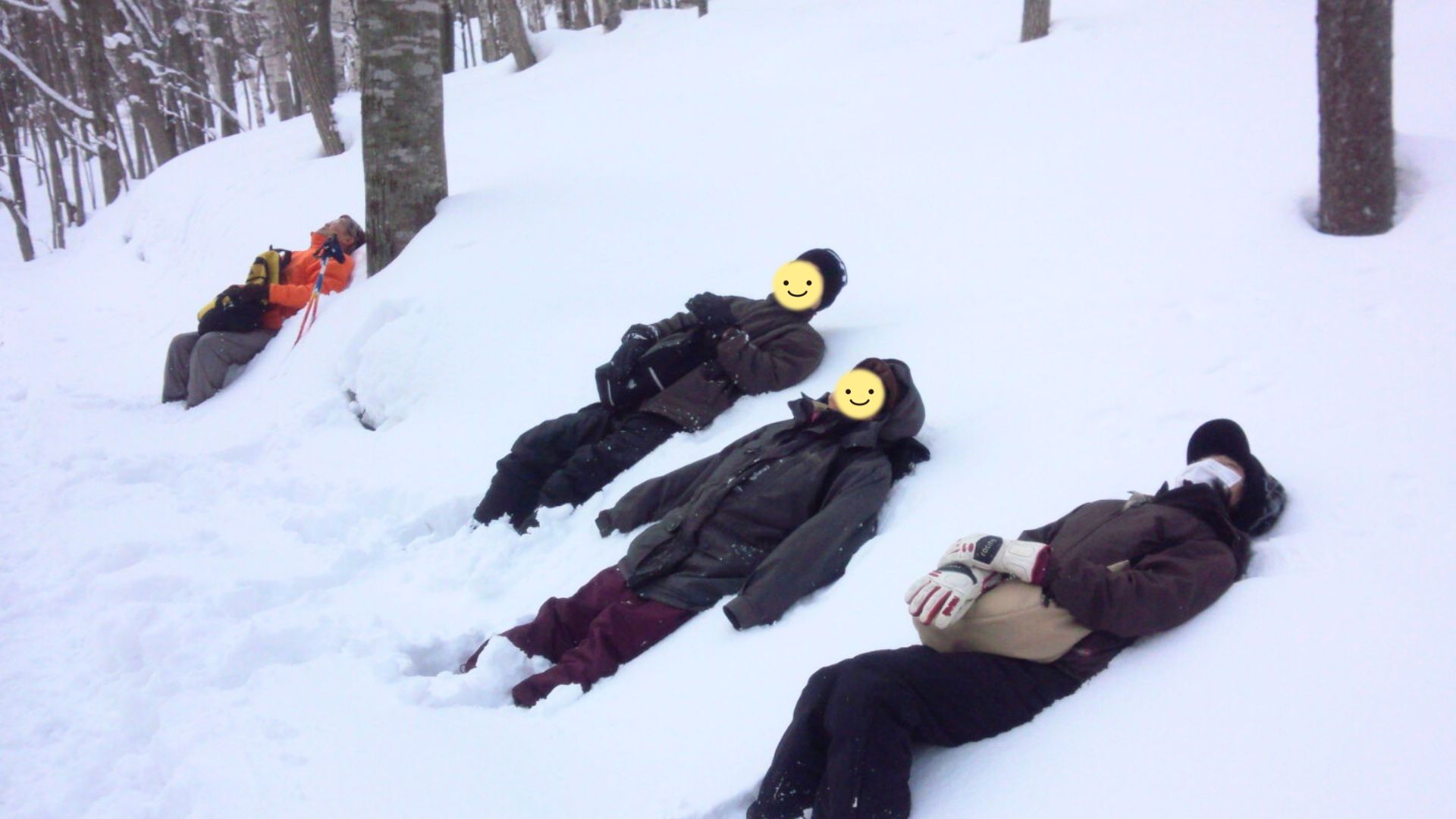 最後に「なかよしの木」のあたりまで歩き、みんなで雪にあおむけに寝転がり空を眺めてから散会しました。